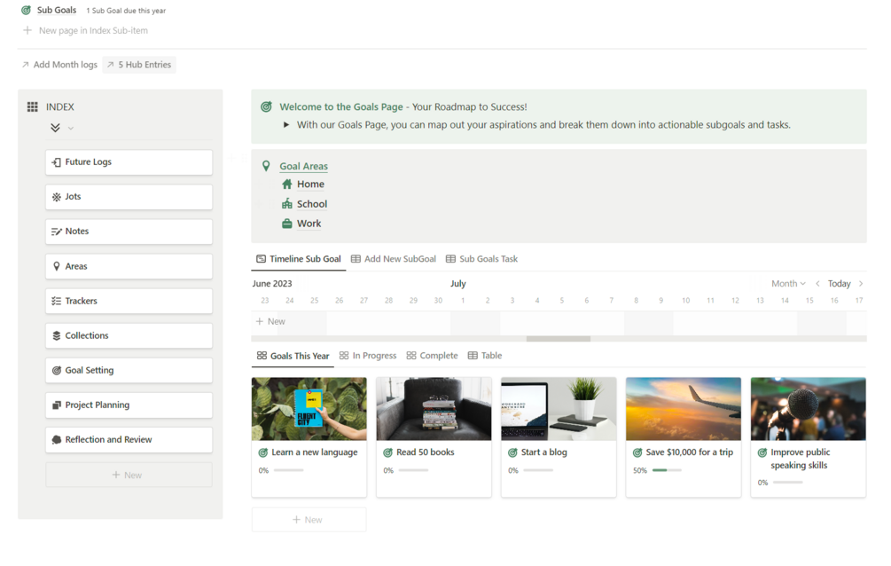 - Goal Setting: Set short-term and long-term goals across personal and professional domains.